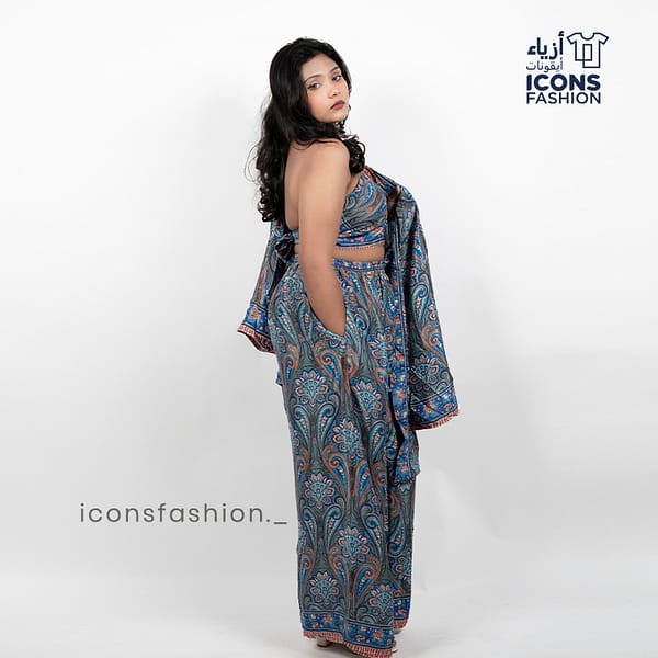 Women printed Co-Ord set | Ladies stylish wide leg pants crop top and shrug